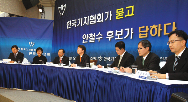 안철수 = 어느 인터뷰에서 ‘강 건너고 다리를 불살랐다’고 말씀드렸다. 거기에 대해서 여러 가지 생각, 해석이 교차되는 광경을 봤는데 그 뜻은 내가 가진 모든 걸 버리고 정치인으로 나서겠다고 말한 것이다. 그 전에 해왔던 교수직이라든지 안랩 이사회 의장직을 포함한 여러 다양한 사회활동직을 모두 그만두고 정치인의 길로 들어서고 결과와 상관없이 앞으로도 계속하겠다는 뜻이었다. 그것이 지금까지 1년 이상 지속되고 있는 국민들의 새정치에 대한 열망을 충족시키는 길이라 생각했다. 나는 패배할 것이라고 생각 안한다. 만약 그런 일이 있더라도 계속 정치인으로서 국민들의 새정치에 대한 열망에 부응하겠다. 민생문제 해결의 열쇠는 정치권이 갖고 있다는 데 절박함을 갖고 있다.