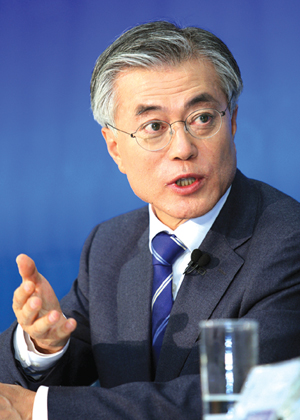 문재인 = 한미FTA가 이명박 정부의 일방적 밀어붙이기로 비준됐다고 하더라도 국가 간 체결된 경제적 협정을 우리 마음대로 폐기할 수 없다. 한미 관계 파탄, 국제경제 무대에서 한국 고립 등을 다 각오해도 폐기가 이익이라면 선언하면 된다. 하지만 그런 폐기는 현실적으로 불가능하다. 그런 폐기를 말씀드린 적 없다. 이미 체결된 FTA는 존중, 이행돼야겠지만 우리 국민이 염려하는 독소조항은 미국에 대해 재협상을 요구하겠다는 것이다. 한미FTA 협정 속에 일방이 언제든지 그런 조항에 대해 재협의 요구할 수 있게 돼 있다. 미국은 협정상 재협의 자체에 응해야 한다. 재협의 내용을 받아들여줄 지는 협상을 해봐야 안다. 재협의 자체를 거부하는 건 협정상으로도 있을 수 없는 일이다. 이런 재협상은 제 주장이 아니라 비준안이 통과될 때 여야가 국회 합의로 가능하도록 한 것이다. 오히려 우리가 미국에게 당당하게 재협상을 요구할 수 있도록 언론도 힘을 받쳐주는 게 필요하다. 미국은 타결 이후에 비준의 조건으로 재협상을 요구까지 했다. 우리는 왜 요구를 못하냐.