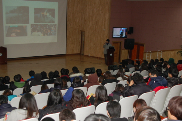 차정인 기자는 ‘인터넷 시대 뉴스 읽기와 기자 직업’을 주제로 특강했다. 차 기자가 ‘1박2일’ 녹화 장면이 담긴 사진을 보여주며 방송사 직업군에 대해 이야기를 하자 학생들의 눈빛이 반짝이기 시작했다. 차 기자는 “여기 사진에 나오는 연예인, 프로듀서, 작가, 카메라기자, 오디오맨 등은 여러분의 미래 모습일 수 있다”며 “치열하게 준비하면 이룰 수 있다”고 말했다.