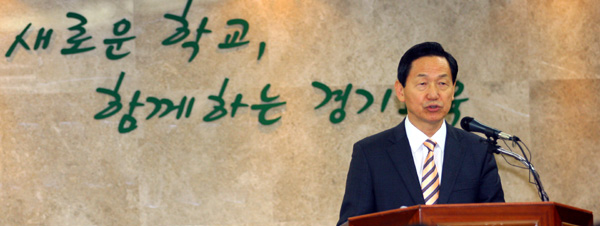 ▲ 김상곤 경기교육감이 3일 경기도교육청에서 5대 혁신과제 추진을 위한 '2013년 경기혁신교육 방안'을 발표하고 있다. (뉴시스) |