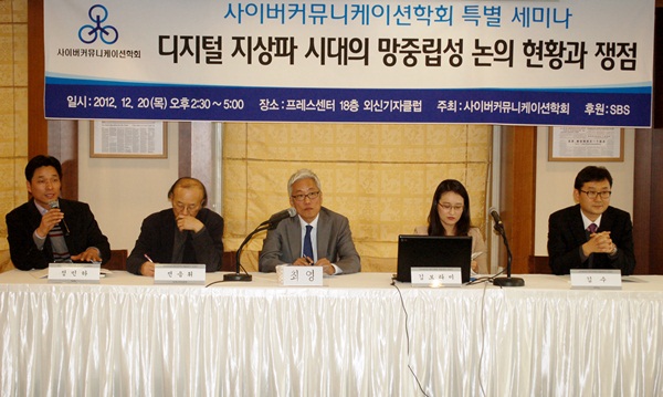 한국언론학회 사이버커뮤니케이션학회는 20일 한국프레스센터 18층 외신기자클럽에서 '디지털 지상파 시대의 망중립성 논의 현황과 쟁점' 세미나를 열고 현재의 폐쇄적인 망중립성 논의의 공론화를 촉구했다.