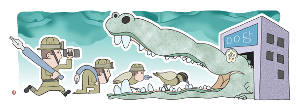 그래서 언론사들도 취재 편의를 위해 기자들의 출신과 성향을 고려해 출입 정당을 정하기도 한다. TK(대구·경북) 출신 기자는 새누리당을, 호남 출신 기자는 민주통합당을 출입하는 경우가 다반사다. “다들 대구 사투리 쓰고 있는데 혼자서 전라도말을 쓰면서 접근하기엔 한계가 있지 않겠느냐”는 것이다.