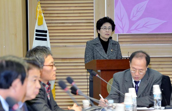 ▲ 유승희 민주통합당 의원이 28일 국회 의원회관에서 열린 ‘방송통신 정부개편 평가와 대안을 모색한다’라는 토론회에서 인사말을 하고 있다. (뉴시스) |