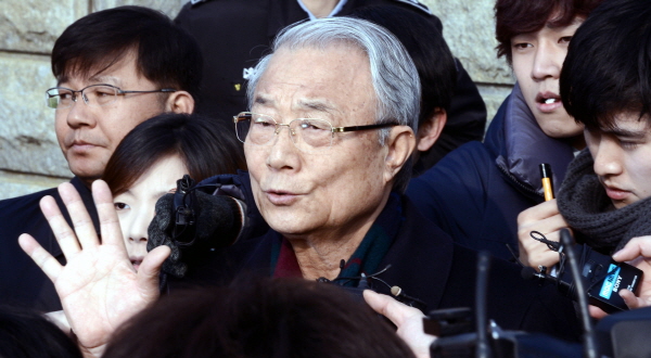 | ▲ 이명박 대통령이 최시중 전 방송통신위원장과 천신일 세중나모여행 회장 등에 대한 설 특별사면을 단행한 31일 오전 경기도 의왕시 서울구치소에서 최 전 위원장이 석방된 뒤 취재진들의 질문에 답하고 있다.(뉴시스) | ||
