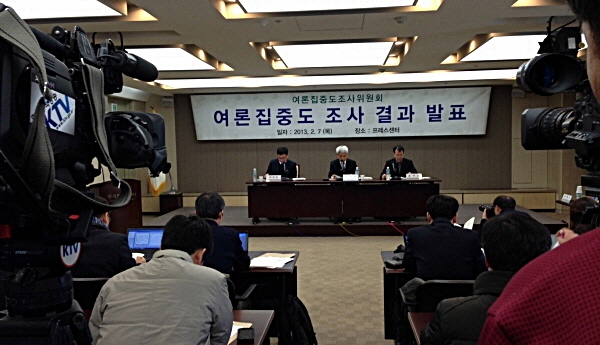 여론집중도조사는 2009년 신문법 개정에 따라 제도가 도입됐다. 이번 조사는 여론형성 과정에 영향을 미치는 매체 영향력의 집중 정도를 분석했으며 매체 부문과 매체 계열에 대한 전반적인 여론집중도조사 결과가 발표된 것은 처음이다.