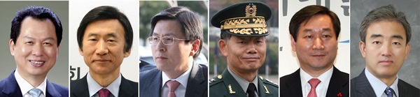 | ▲ 13일 장관 후보자에 내정된 (왼쪽부터)교육부 장관에 서남수 전 차관, 외교부 장관에 윤병세 전 차관, 법무부 장관에 황교안 전 부산고검장, 국방부 장관에 김병관 전 한미연합사령부 부사령관, 안전행정부 장관에 유정복 새누리당 의원, 문화체육관광부 장관에 유진룡 전 차관.(뉴시스) | ||