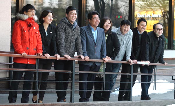 ▲ ‘경제민주화를 연구하는 모임’ 기자들이 모처럼 한자리에 모였다. 왼쪽부터 유병온 서울경제, 김혜영 평화방송, 이승환 파이낸셜뉴스, 조창원 파이낸셜뉴스, 전예현 내일신문, 홍석희 헤럴드경제, 김대희 OBS, 김경환 머니투데이 기자. |