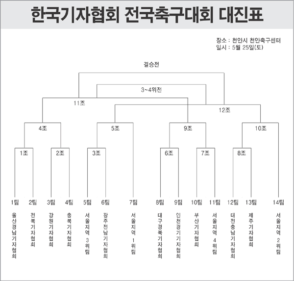 5월에는 ‘한국기자협회 전국축구대회’가 25일 천안시 천안축구센터에서 열리며, 시도협회 10개팀과 서울대회 상위 4개팀 등 14개팀이 우승컵을 놓고 결승을 치른다. 앞서 4,5,11일에 열리는 서울대회는 경기도 고양시 중산구장과 종합운동장 보조경기장, 별무리구장에서 총 51개 서울지역 언론사가 치열한 승부를 겨룬다. 경기는 전ㆍ후반 각 15분과 휴식 10분으로 이뤄져 있다.