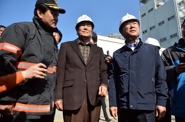 ▲ 전남 완도 출신인 방하남 고용노동부 장관이 15일 오후 전남 여수시 월하동 대림산업 2공장 폭발 사고 현장을 방문해 둘러보고 있다. (뉴시스) |