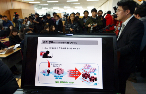 지난달 20일 KBS·MBC·YTN 등 방송사와 신한은행·농협 등 금융사 정보전산망을 마비시켰던 사이버테러가 북한의 소행이라는 공식 조사 결과가 나왔다.