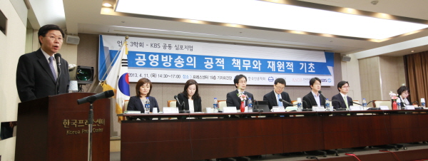 길환영 KBS 사장은 이날 토론회에서 인사말을 통해 “방송통신 융합시대에 한국을 대표할 명품 콘텐츠 제작과 디지털 격차 해소, 세대와 계층간 갈등 해소 등 공영방송의 공적 책무를 다하기 위해선 수신료 현실화 등 안정적인 재원 뒷받침이 절실하다”고 밝혔다.