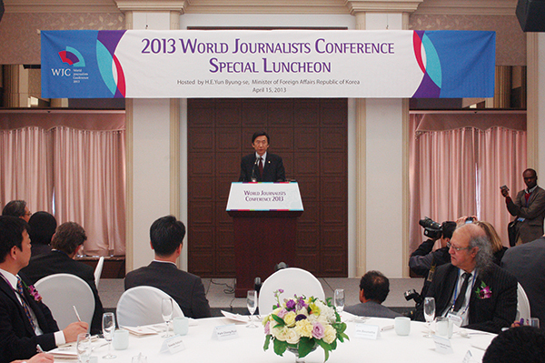윤 장관은 이날 서울 중구 프레스센터 내셔널프레스클럽에서 ‘박근혜 정부의 외교정책’이란 주제로 특강을 하며 이 같은 메시지를 전달했다. 특강은 한국기자협회(회장 박종률)가 주최하는 세계기자대회의 첫 번째 일정으로 마련됐다.