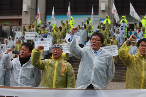 주봉희 지부장은 “동일노동 동일임금을 요구하는 게 아니다. 정규직화를 요구하는 것도 아니다. 우리는 파업 할 때도 KBS 안전관리실에서 요구한 수칙을 지키며 했고, 식당 갈 때는 투쟁 조끼도 벗고 들어갔다. 정말 양반 같이 투쟁했는데, KBS는 우리를 사람으로, 인격적으로 대접하지 않았다”고 울먹였다.