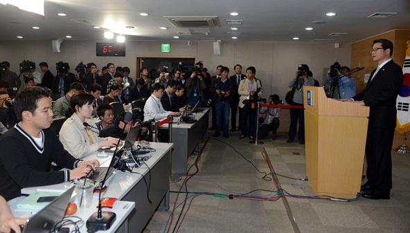 | ▲ 류길재 통일부 장관이 지난 26일 서울 종로구 정부서울청사 합동브리핑실에서 개성공단 입주기업 잔류 인원의 전원 철수를 권고하고 있다. (뉴시스) | ||