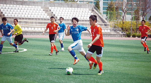▲ 5일 경기 고양시 별무리경기장에서 한국경제와 중앙일보 선수들이 8강행 티켓을 두고 치열한 싸움을 벌이고 있다. (강진아 기자) |