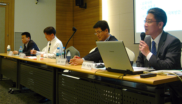 ▲ 10일 전남 여수 디오션호텔에서 열린 한국언론학회 특별세션에서 박종률 한국기자협회장(맨 오른쪽)이 ‘저널리스트 직업 위기 극복 방안’에 대해 발표하고 있다. |