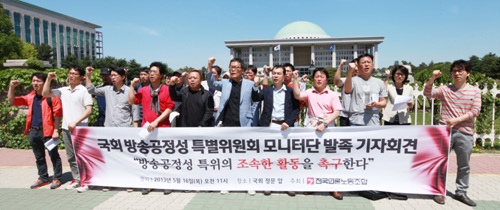 전국언론노조는 16일 여의도 국회 앞에서 기자회견을 열고 “MB정권에서 자행된 언론장악을 청산하고 심각하게 훼손된 방송의 공정성이 실질적으로 회복될 수 있도록 특위의 활동을 비판, 감시, 독려하는 국회 방송공정성특별위원회 모니터단을 발족한다”고 밝혔다.