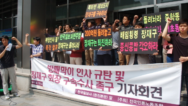 노조는 장 회장이 경영권을 인수하는 과정에서 700억원의 증자 약속을 제대로 이행하지 않았고 지난 2006년에는 한국일보 중학동 사옥을 매각하는 과정에서 우선매수청구권을 확보했으나 개인 돈을 빌리는 과정에서 이를 넘기는 등 결과적으로 한국일보에 200억원 상당의 재산상 손해를 끼쳤다고 지적했다.