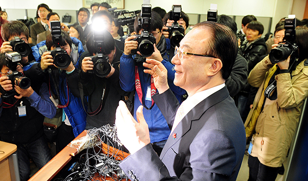 ▲ 2010년 12월 31일 서울 세종로 방송통신위원회에서 최시중 전 방송통신위원장이 종합편성채널과 보도전문채널 사업자 선정 결과를 발표하고 있다.(뉴시스) |