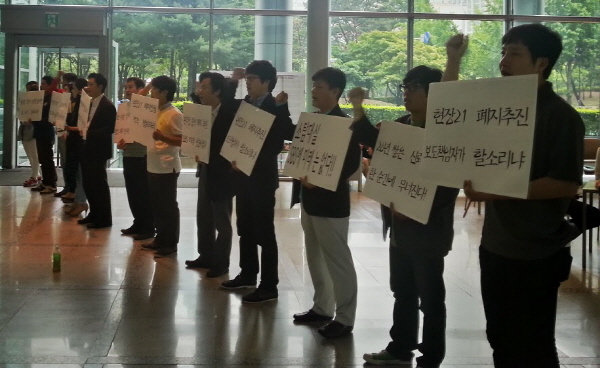 이에 앞서 SBS 이웅모 보도본부장은 기자들이 제작하는 유일한 시사프로그램 ‘현장21’ 폐지안을 ‘SBS뉴스 강화’를 이유로 경영진에 제출했다. SBS 기자들은 물론 시민단체의 반발까지 이어지자 우원길 사장은 29일 열린 편성위원회에서 “폐지안 원점 재검토” 지시를 내렸다.