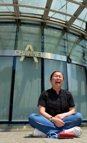 | ▲ 5·18 광주민주화운동 피해자와 광주지역 시민단체 회원들이 10일 오후 서울 중구 동아일보 사옥 앞에서 '5·18 왜곡보도 종편 규탄대회'를 갖던 중 한 참가자가 오열을 하고 있다. | ||