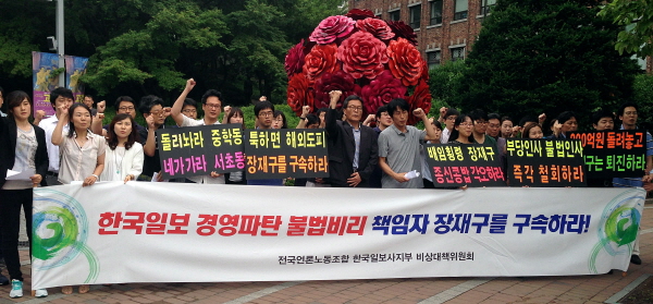 언론노조 정상원 한국일보 지부장은 “장 회장은 단순한 경제사범이다. 법과 원칙에 따라 처벌하면 된다”며 “검찰이 눈치 보지 말고 빨리 소환해 처벌해야 한다”고 지적했다.