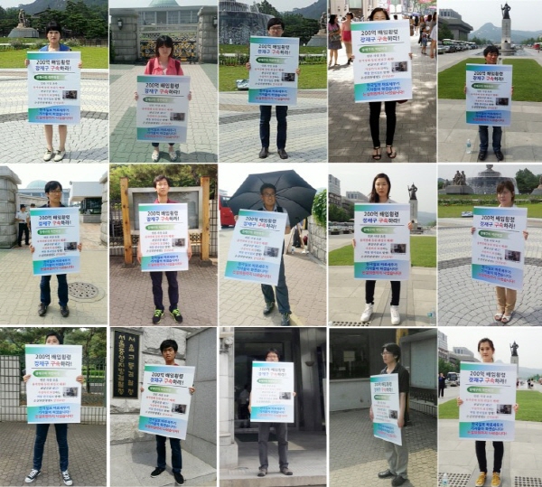 ▲ 20일부터 청와대, 국회, 경찰청 앞 등에서 릴레이 1인 시위를 벌이고 있는 한국일보 기자들.(사진=한국일보 노조 비대위) |