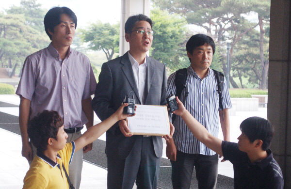 박종률 한국기자협회장과 정상원 한국일보 비상대책위원장은 이날 기자협회 소속 기자 1299명의 서명을 받은 1차 탄원서를 서울 서초동 서울중앙지검에 냈다.
