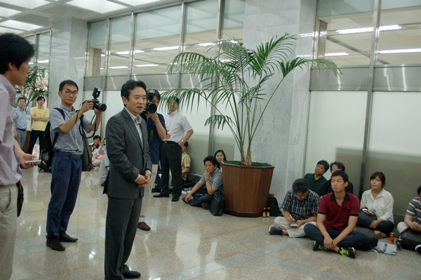 김용태 새누리당 의원도 이날 한국일보 비대위를 면담하고 편집국 봉쇄 현장을 방문했다.