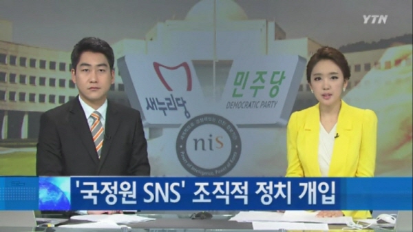 ▲ 지난달 20일 방송된 YTN의 '국정원 SNS 박원순 비하글 2만건 포착' 보도의 한 장면(YTM 영상 캡처) |