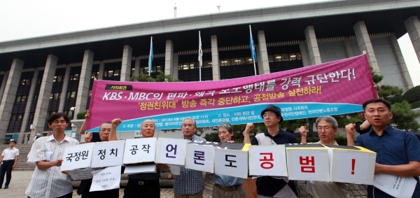 국정원의 대선 개입과 관련한 공영방송 KBS와 MBC의 보도 행태를 규탄하는 목소리가 높아지고 있다.