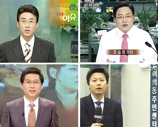 ▲ 해직언론인들은 해직 이전 소속 언론사에서 간판급 언론인으로서 인정받았다. YTN의 대표적 프로그램인 돌발영상 초대 PD를 거쳐 뉴스 앵커로 활약했던 노종면 기자, 뉴스1 팀장과 국회반장을 거친 조승호 YTN 기자, MBC 시사매거진 2580 등에서 활약했던 이용마 기자, 정치부 국회팀을 거쳐 아침뉴스인 뉴스투데이 앵커를 역임했던 박성호 기자.(왼쪽 위부터 시계방향) (사진=MBC·YTN영상 캡처) |