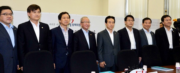 | ▲ 전월세난 해결대책 마련을 위한 당정협의회가 20일 오후 서울 여의도 국회 새누리당 정책위의장실에서 열렸다. 왼쪽부터 안종범 새누리당 의원, 서승환 국토교통부장관, 김기현 정책위의장, 현오석 경제부총리, 나성린, 윤상현, 박대동 새누리당 의원, 신제윤 금융위원장. (뉴시스) | ||
