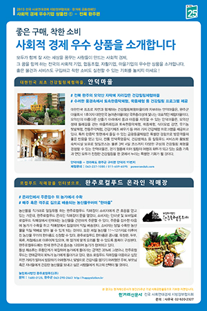 한겨레는 올해 창간 25돌을 맞아 사회적 경제 기업에 광고면을 무료로 기부했다. ‘상생’의 가치에 바탕을 둔 사회적 경제를 지원하기 위해 광고 지면을 나눈다는 취지다. 영세한 사회적 기업과 협동조합이 재정 부담으로 신문 광고를 할 수 없는 상황에서 우수 상품을 소개할 기회를 제공한다는 것이다. 이병 콘텐츠비즈협력단장은 “사회적 경제가 새로운 경제주체로 대안적 역할을 한다는 의미에서 이들을 육성하는데 도움을 주고자 하는 것”이라며 “한겨레가 사회적 경제 가치를 확산해온 데 대한 연장선”이라고 밝혔다.