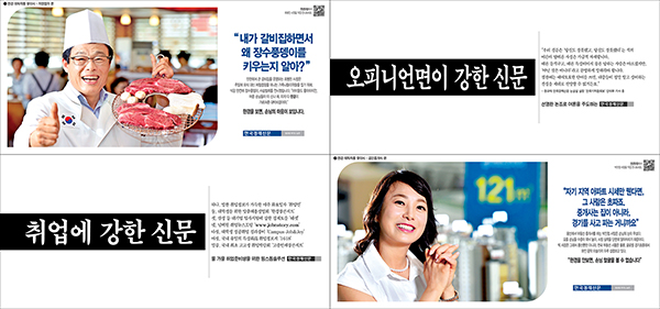 기존의 포괄적인 언론사 이미지 광고와 달리 한경만의 특색을 알릴 수 있는 광고도 제작했다. ‘오피니언이 강한 신문’, ‘취업에 강한 신문’ 등 주목할 만한 지면이나 사업을 구체적으로 내세웠다. 지면뿐만 아니라 SNS 등을 통해서도 광고를 적극 활용할 계획이다. 한경 관계자는 “내수경기가 위축되면서 언론계가 마케팅 비용을 축소하고 있지만 위기를 기회로 활용하는 역발상이 필요하다는 데 착안했다”며 “올해 중 4~5개 시리즈 광고를 추가로 선보일 예정”이라고 밝혔다.