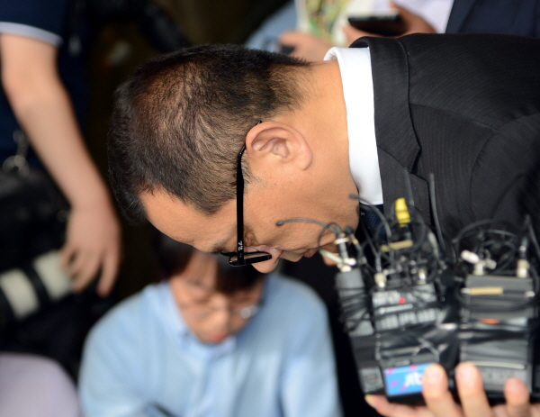 | ▲ 【서울=뉴시스】박찬수 인턴기자 = 전두환 전 대통령의 장남 전재국 시공사 대표가 10일 오후 서울 서초구 서초동 서울중앙지방검찰청에서 미납추징금 1672억원에 대한 사과문을 발표하고 고개를 숙이고 있다. | ||