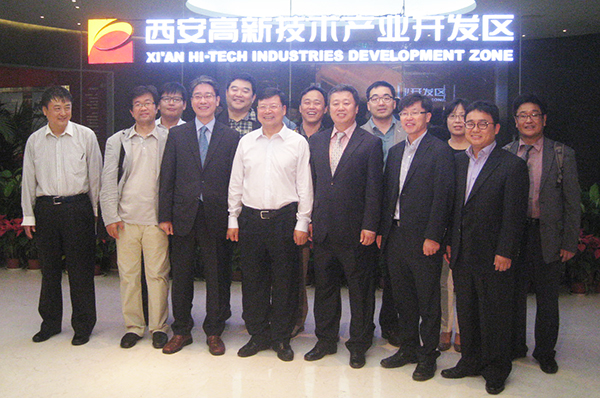 | ▲ 2013 한-중 기자협회 정기 교류차 중국을 방문한 한국기자협회 대표단이 섬서성 서안시 하이테크산업개발구를 견학한 뒤 자오 홍추안(趙紅專) 서안시 상임위원과 기념촬영을 하고 있다. | ||
