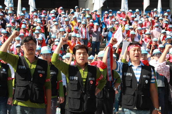 KBS노동조합(1노조)이 26일 오전 5시부터 총파업에 들어갔다. KBS노조는 25일 오후 2시 여의도 KBS 본관 앞 계단에서 전국 조합원 총회를 열고 방송독립 쟁취와 임금투쟁 승리를 위한 총파업에 돌입한다고 밝혔다.