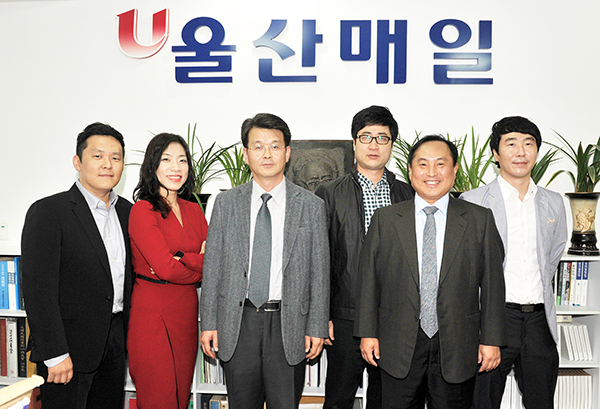 ▲ 울산 최초의 아침 신문 ‘울산매일신문사’ 사회부. 왼쪽부터 서승원 기자, 조혜정 차장, 이홍관 부국장, 김준형 기자, 김기곤 부장, 안정섭 기자. (사진=울산매일신문 사진부 우성만 기자) |