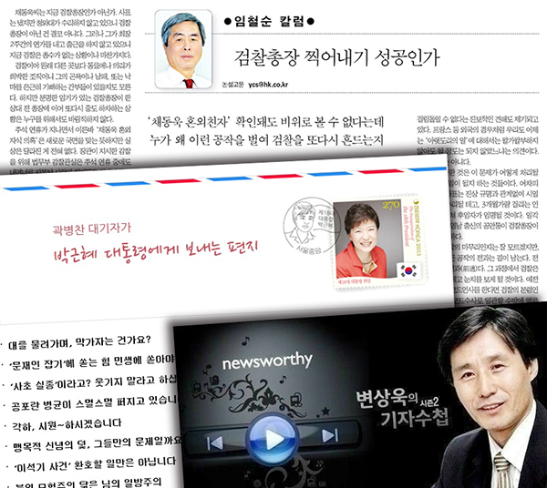 정통 칼럼 영역도 굳건하다. 40여년 경력의 임철순 한국일보 논설고문은 채동욱 전 검찰총장 찍어내기에 코드수사를 하는 “검찰이 가엾다”, “진취적 보좌리더십 미달”인 김기춘 비서실장 인선을 다시 하라는 등의 칼럼을 기재했다. 비판이 주되지만 잘못도 바로 잡는다. 지난 22일 칼럼은 지난 8일 ‘가상소설, 함부로 쓰지 마라’는 글의 반성문이라고 밝혔다. ‘채동욱 아버지 전상서’를 질타하며 비판한 글을 소개했지만 그 역시 다른 이의 창작물이었다며 “가상의 글에 스스로 속았다”고 고백했다. 김철웅 경향신문 논설실장도 칼럼에서 “국민적 저항을 맞을 수 있는 역사의 경고” 등 숙고된 비판을 정제된 글로 보여주고 있다.