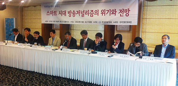 ▲ 한국방송학회 주최로 지난달 31일 오후 서울 중구 프레스센터에서 열린 ‘스마트 시대 방송저널리즘의 위기와 전망’ 세미나에서 발제자와 토론자들이 의견을 개진하고 있다. |