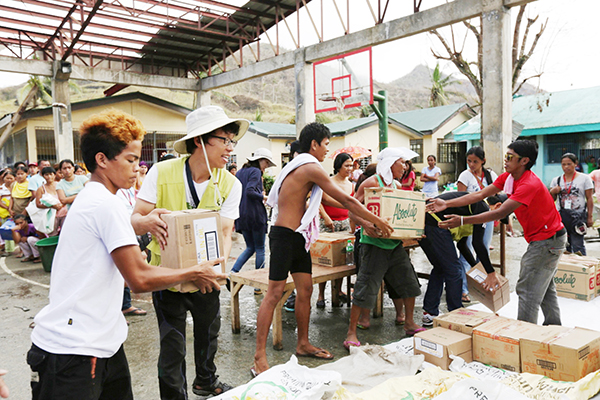 ▲ 사상 최악의 태풍 ‘하이옌’으로 420만 명의 이재민이 발생한 가운데 가장 큰 피해를 입은 타클로반 현지에 우리나라 기자들이 급파됐다. 사진은 지난 17일(현지시각) 필리핀 바랑가이 99지역 커버드 코트에서 굿네이버스의 구호물자를 배분 받은 주민들이 물품을 옮기고 있다. (사진=굿네이버스) |