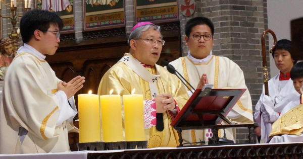 | ▲ 서울=뉴시스】 천주교 서울대교구장 염수정 대주교가 24일 서울 명동대성당에서 신앙의 해 폐막미사를 집전했다. 염 대주교는 이날 미사 강론에서 최근 시국과 관련해 평신도와 사제들의 행동에 대해 "평신도 그리스도인 정치 참여는 일종의 의무, 사제의 직접적인 정치 참여는 잘못된 일"이라고 언급했다.(사진=천주교 서울대교구 제공) | ||