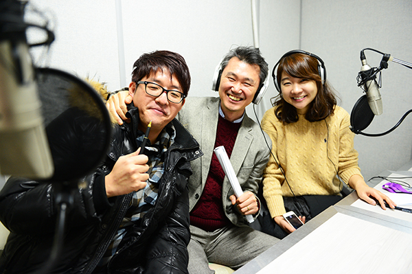▲ 경향신문 팟캐스트 ‘연예는 박하수다’를 진행하고 있는 (왼쪽부터)대중문화부 하경헌, 사진부 김문석, 대중문화부 박은경 기자가 사내 녹음실에서 포즈를 취하고 있다. (사진=경향신문) |