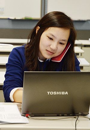 ▲ 배미정 기자가 금감원 관계자와 통화를 하며 통화내용을 노트북에 받아치고 있다. |