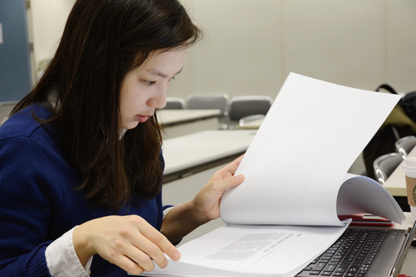 ▲ 금융감독원 공보실에서 나온 조간신문 브리핑 자료를 보고 있는 배 기자. |