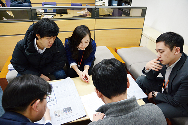 ▲ 매일경제 금융부 기자들이 모여 지면회의를 하고 있다. |