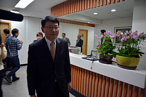 | ▲ 안광한 MBC 신임 사장 내정자가 면접을 마친 뒤 방문진을 나서고 있다. | ||