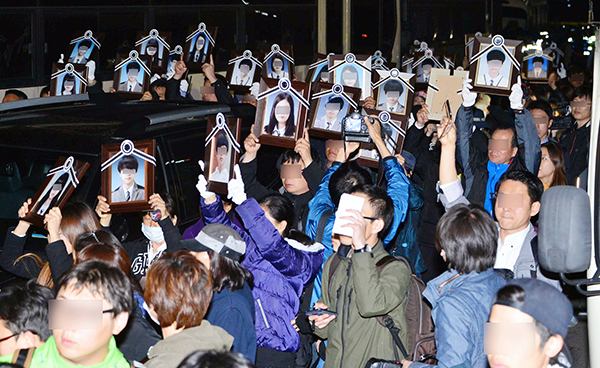 9일, 김시곤, 길환영 사장 사퇴 요구김병권 희생자·실종자·가족 대책위원장은 9일 오전 2시30분쯤 유가족들에게 김시곤 보도국장의 사과를 받는데 실패했다고 전한 뒤 “청와대로 박근혜 대통령을 만나러 가자, 박 대통령은 우리를 받아줄 것이라 믿는다”고 말했다. 유가족들은 이후 버스에 탑승해 청와대로 출발했으나 서울 종로구 청운동 주민센터 앞에서 경찰 차벽에 막혔다. 유가족들은 도로 위에 앉아 밤을 지새우며 대통령 면담을 요구했다.