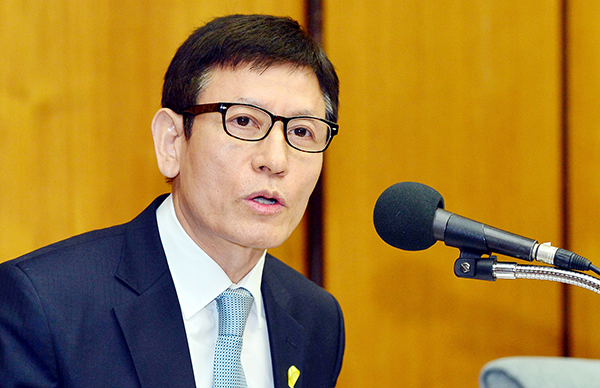 ▲ 9일 오후 서울 여의도 KBS 신관 국제회의실에서 김시곤 보도국장이 기자회견을 열고 사의를 표명하고 있다. (뉴시스) |